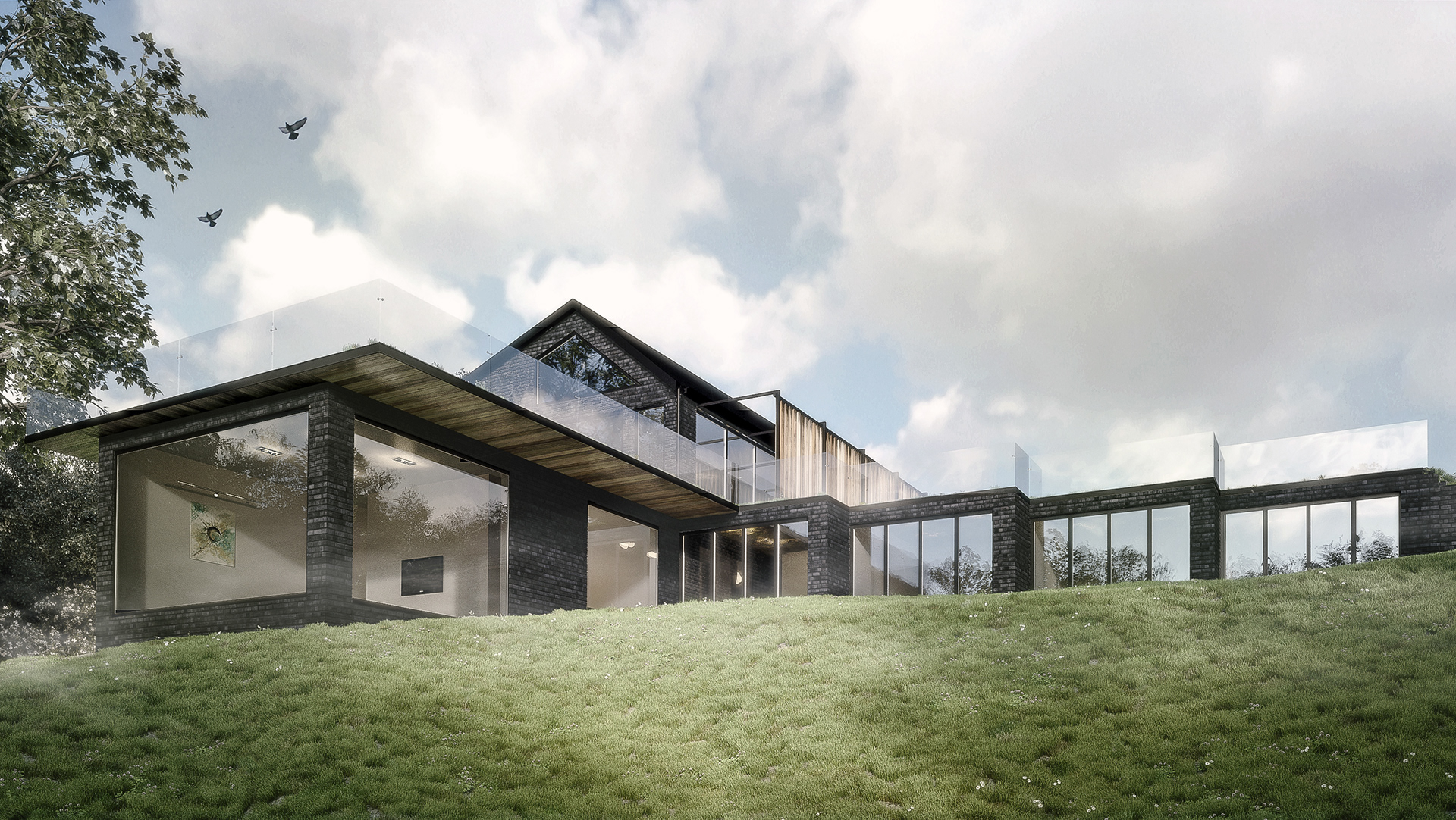 The property is situated in the Lancashire countryside. It is inconspicuous from the front but quite remarkable from the rear. Designed by the award-winning SDA Architecture, the 3 bedroom build went on to be a finalist in the 2015 Northern Design Awards.